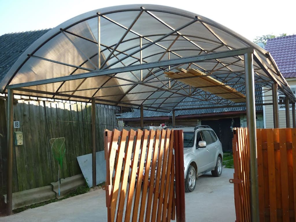 За день на даче изготовили арочный навес 5 на 7 с покрытием поликарбоната. Привезли уже готовые крашенные фермы и весь остальной материал. Все за собой убрали и увезли мусор. Молодцы!
