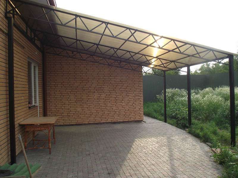 Поэтому компания "Навес Строй" настоятельно рекомендует не экономить, а усилить каркас навеса из профильной трубы более жёсткими профилями с увеличенной толщиной металла и количеством несущих ферм.